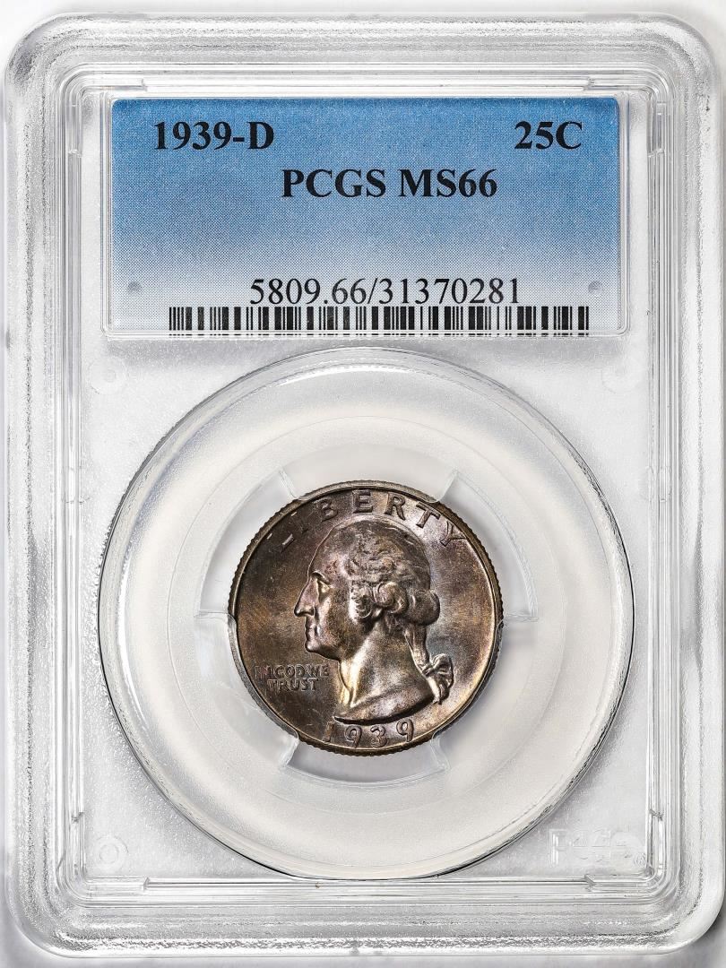 1939-D Washington Quarter Coin PCGS MS66 Amazing Toning