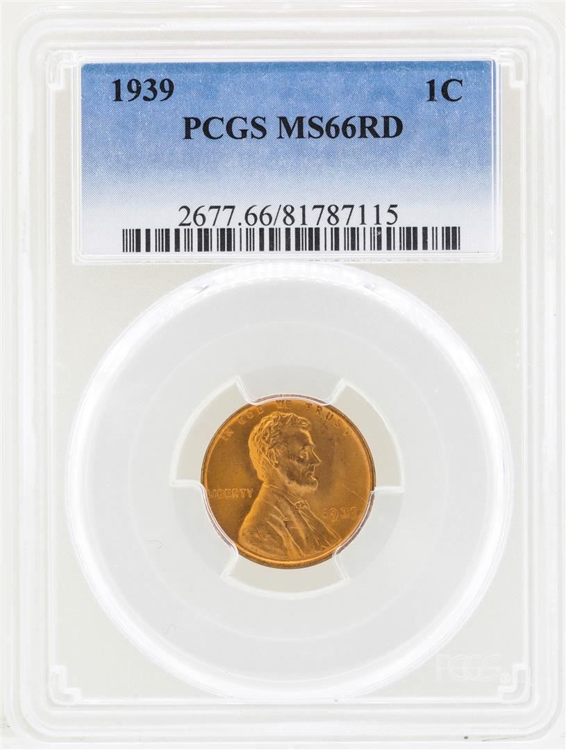 One 1939 Lincoln Wheat Penny Coin PCGS MS66RD. PCGS Graded.