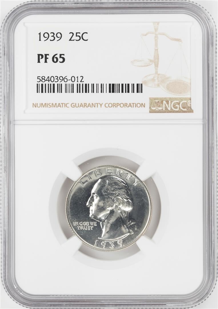 One 1939 Proof Washington Quarter Coin NGC PF65. NGC Certified.