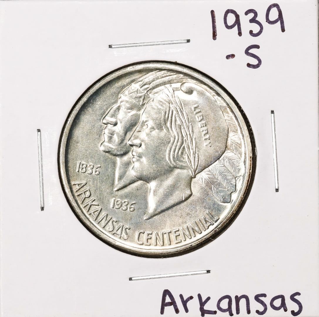 One 1939-S Arkansas Centennial Commemorative Half Dollar Coin.