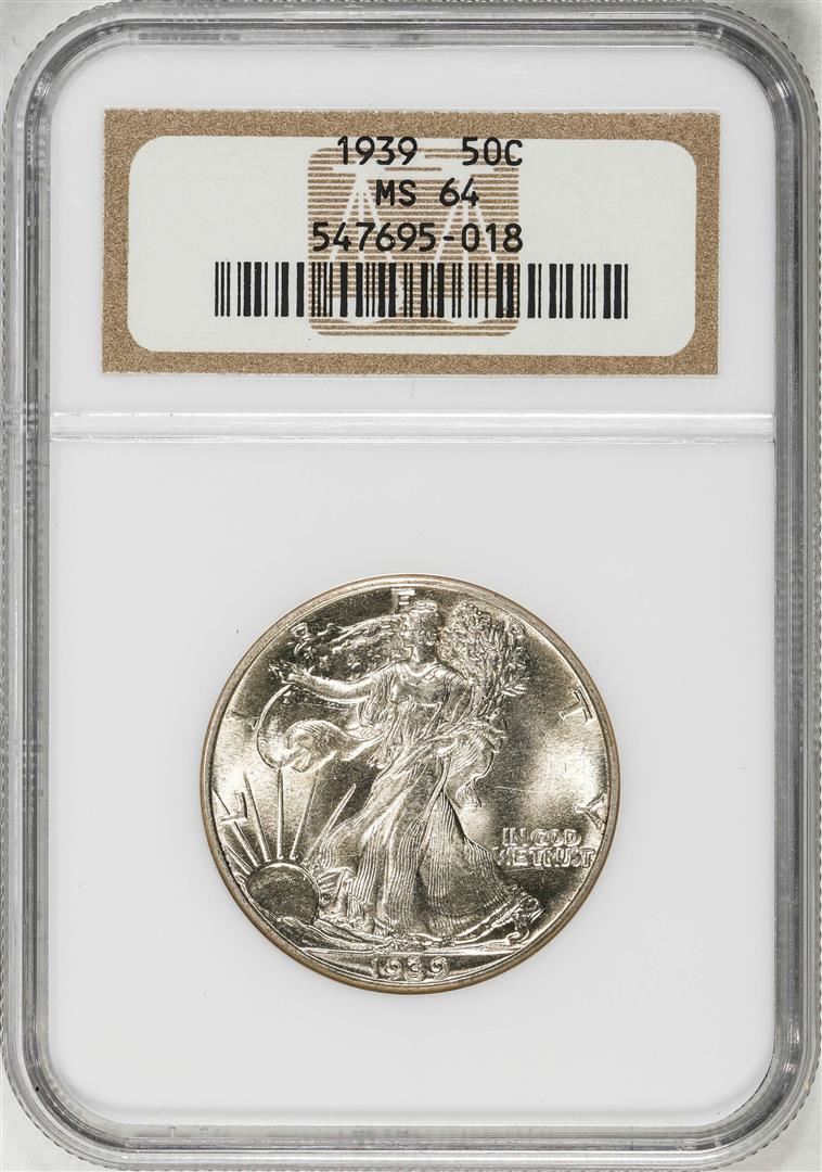 One 1939 Walking Liberty Half Dollar Coin NGC MS64. NGC Certified.