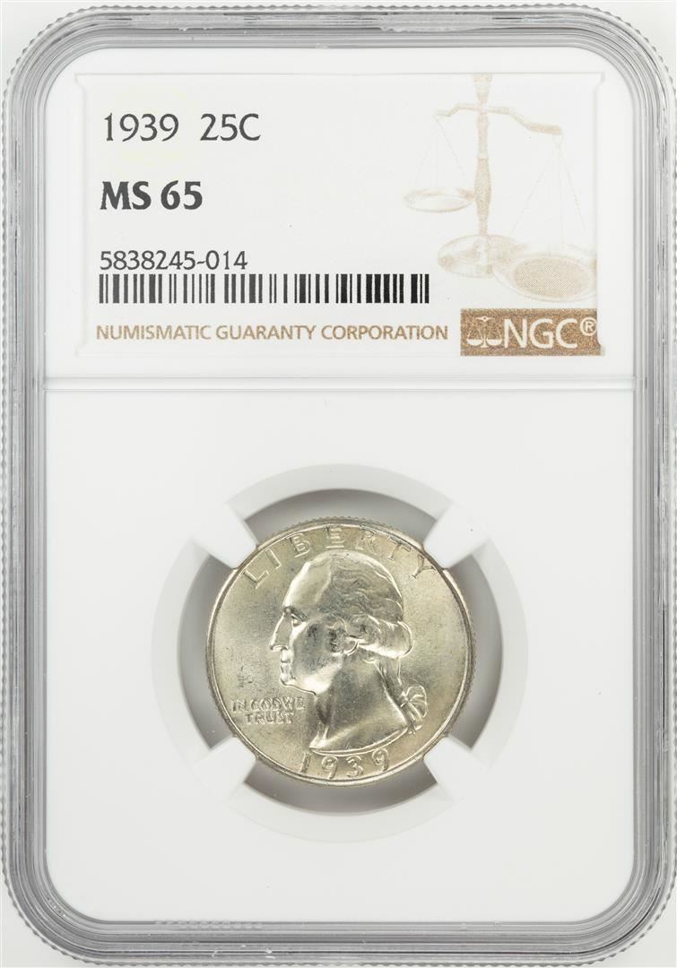 One 1939 Washington Quarter Coin NGC MS65. NGC Certified.