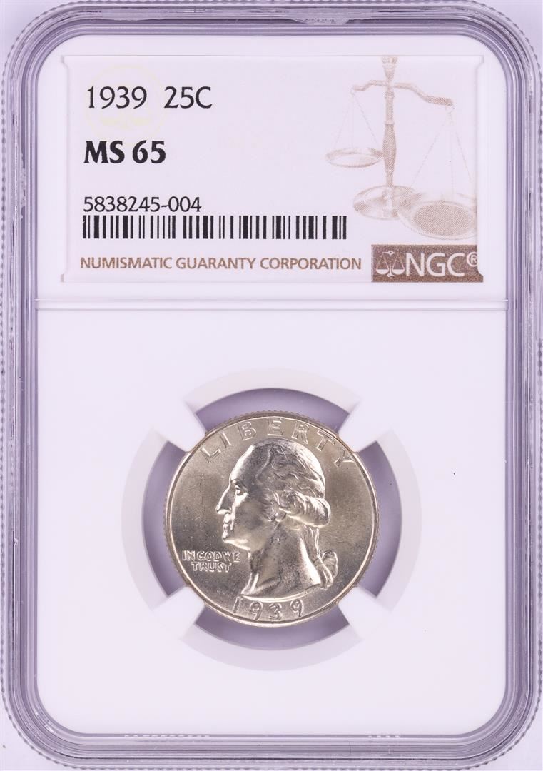 One 1939 Washington Quarter Coin NGC MS65. NGC Certified.