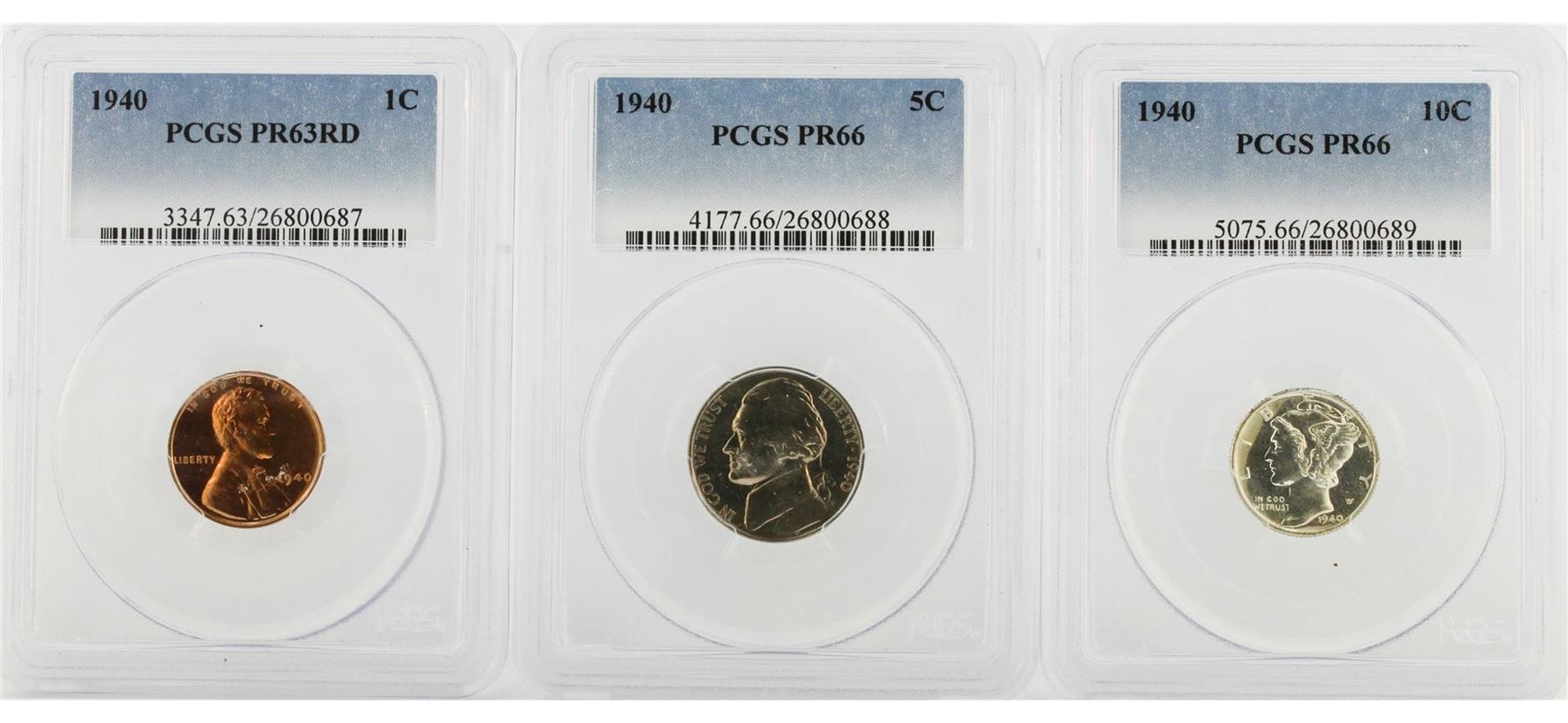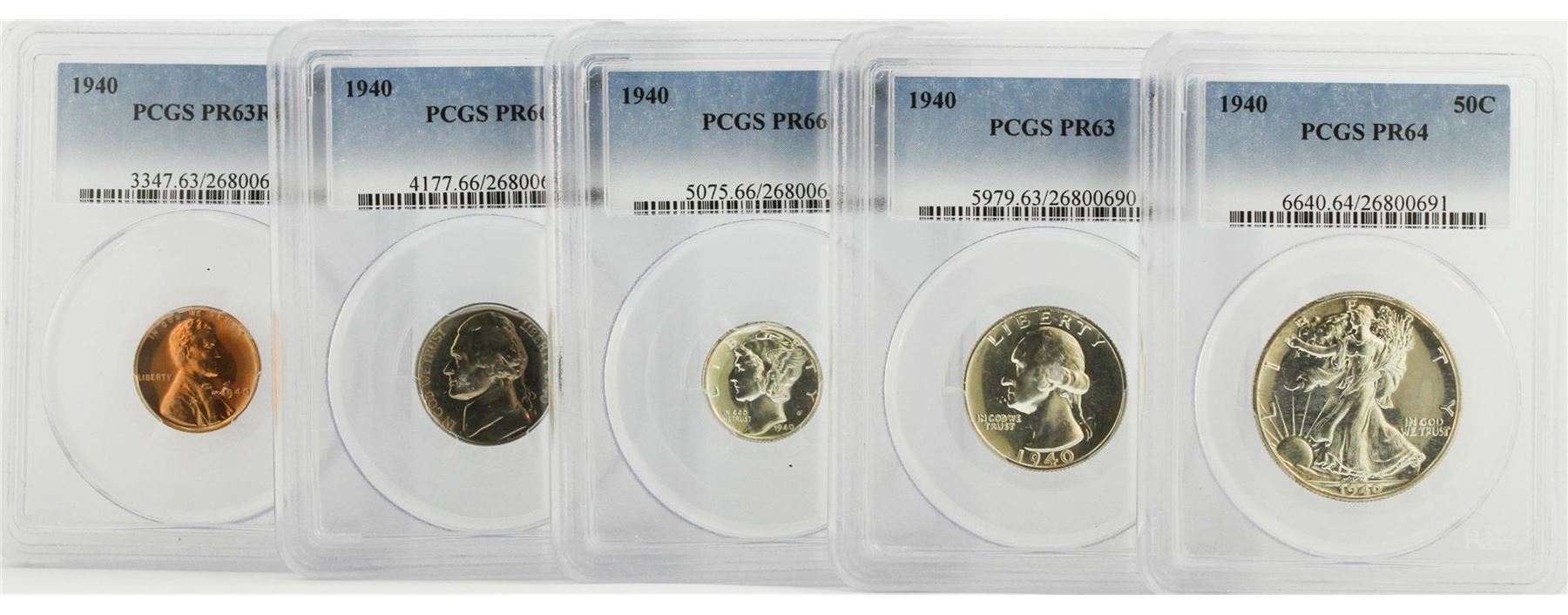 One 1940 (5) Coin Proof Sets PCGS Graded. PCGS Graded.
