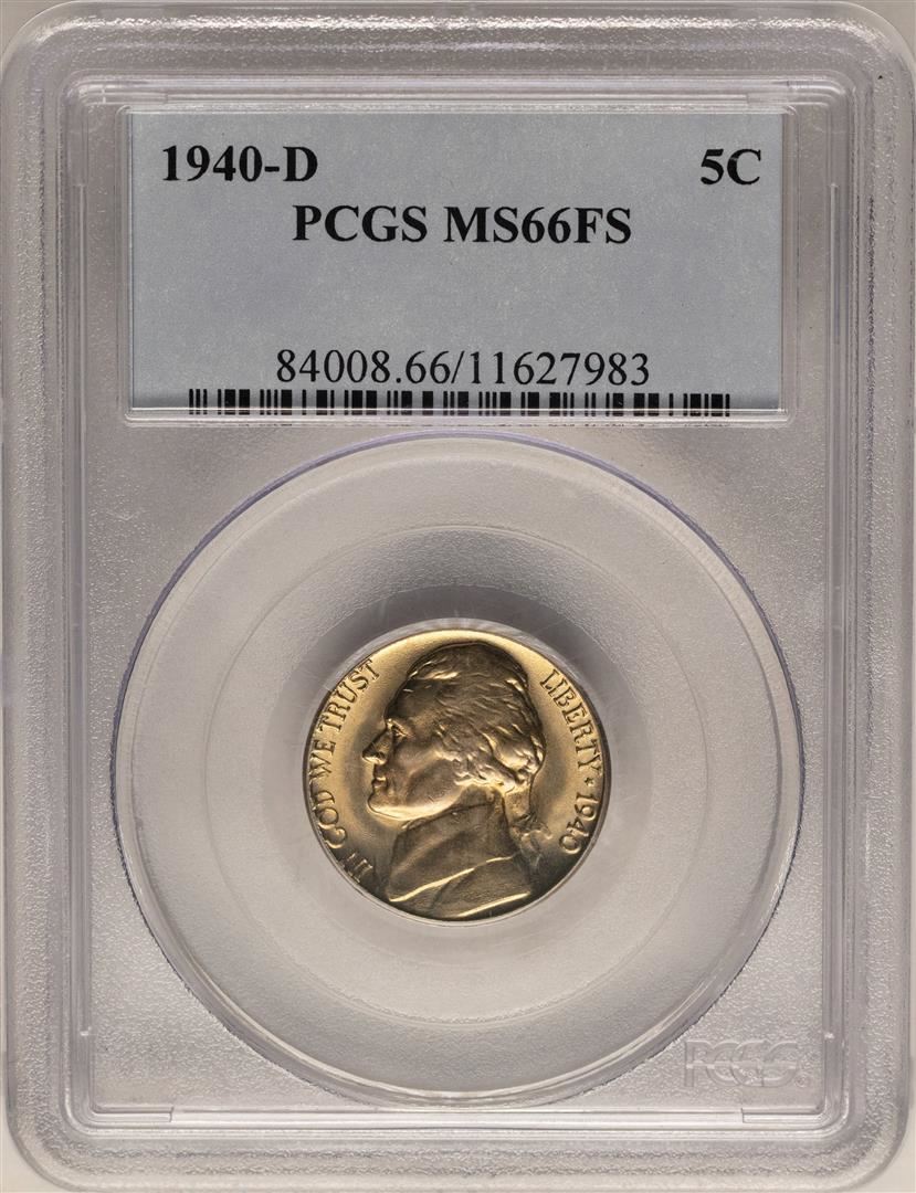 One 1940-D Jefferson Nickel Coin PCGS MS66FS. PCGS Graded.