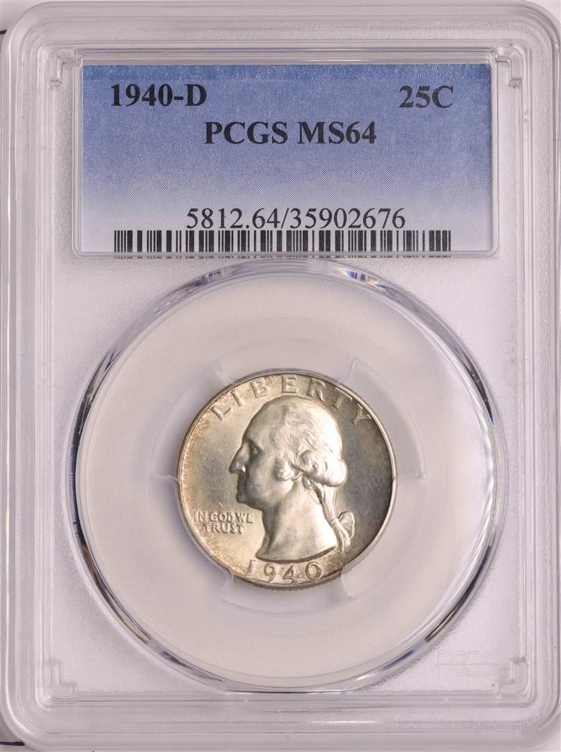 One 1940-D Washington Quarter Coin PCGS MS64. PCGS Graded.