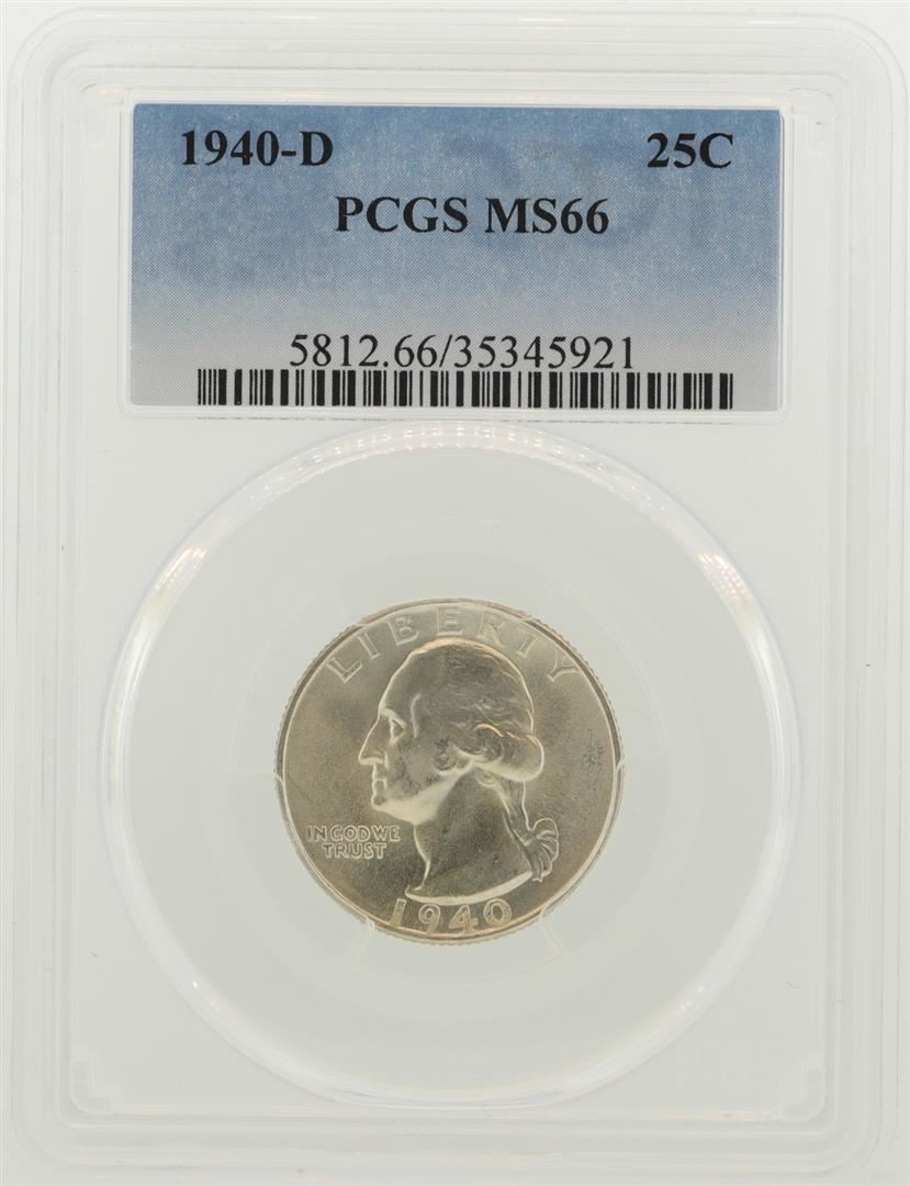 One 1940-D Washington Quarter Coin PCGS MS66. PCGS Graded.