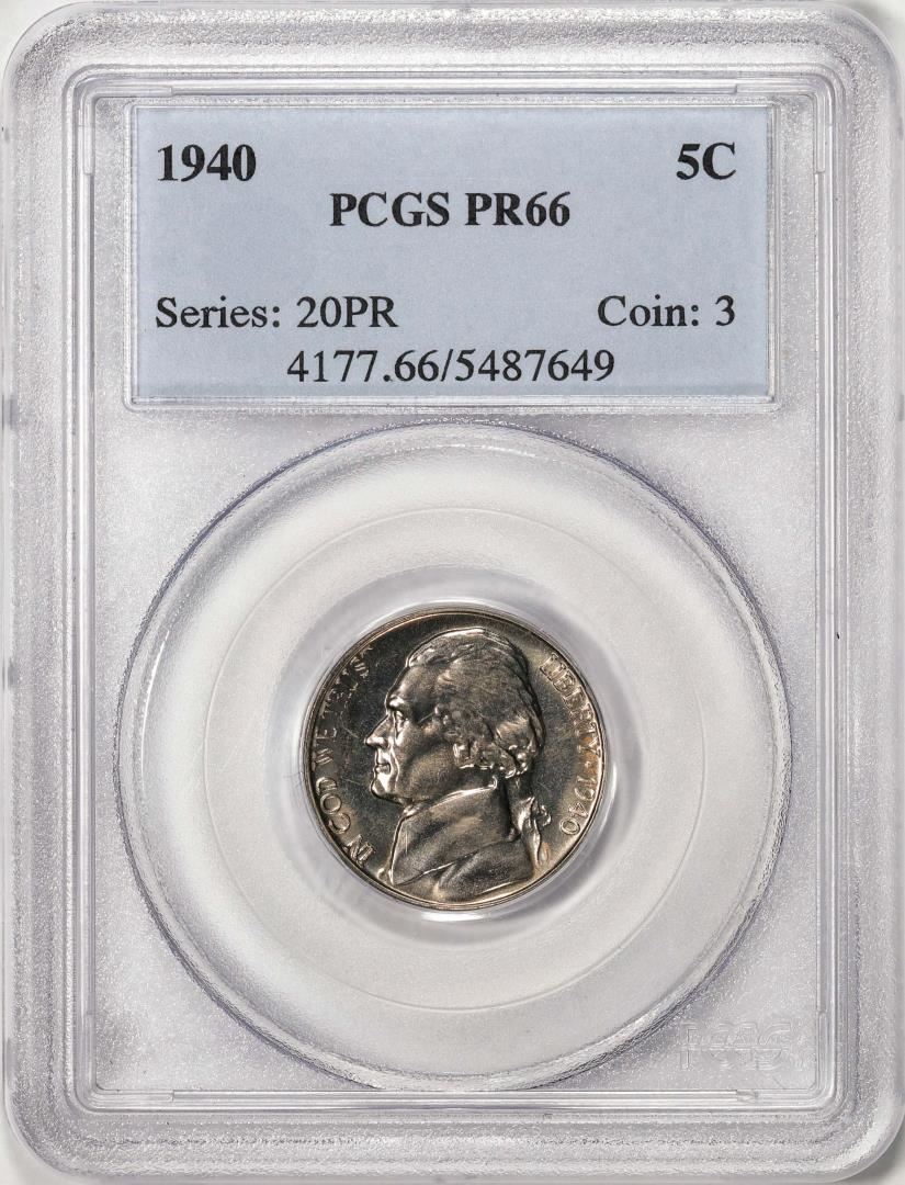 One 1940 Proof Jefferson Nickel Coin PCGS PR66. PCGS Graded.