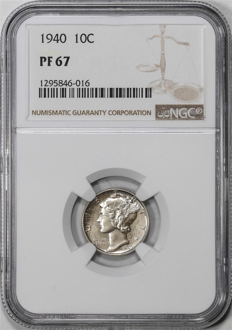 One 1940 Proof Mercury Dime Coin NGC PF67. NGC Certified.