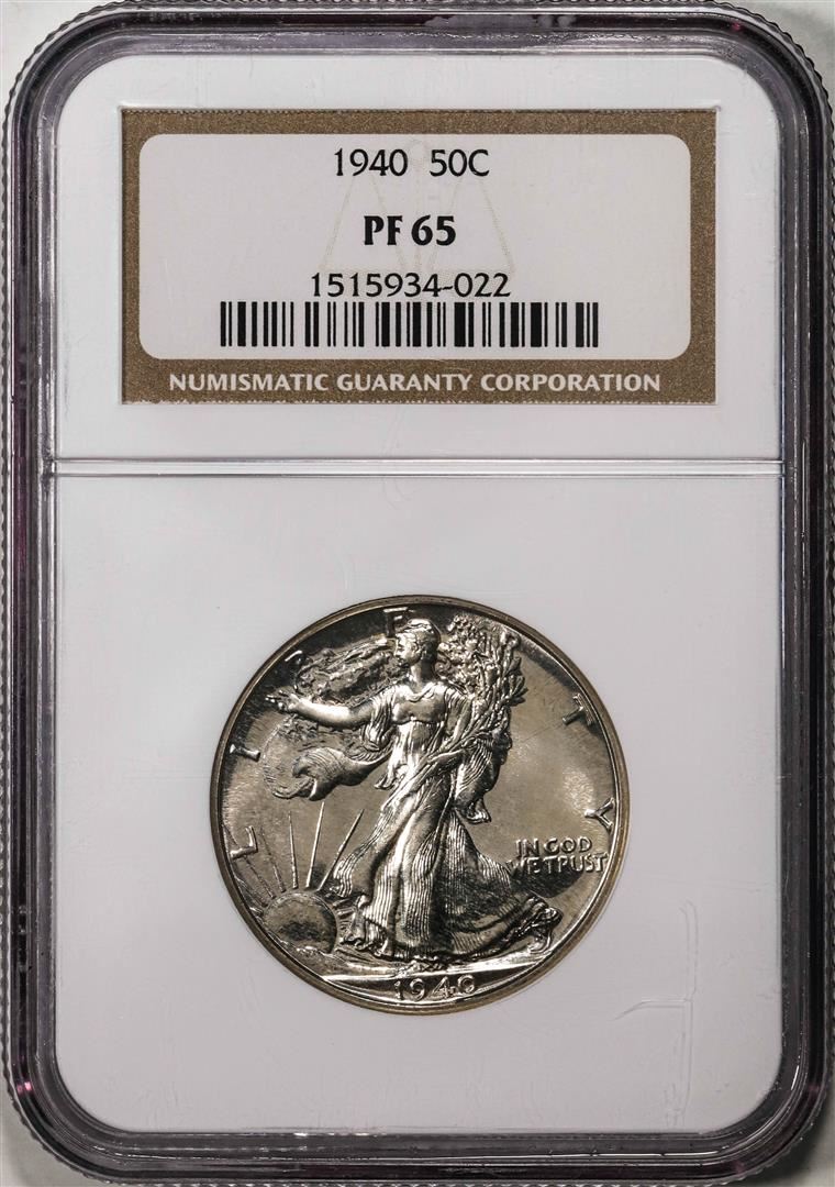 One 1940 Proof Walking Liberty Half Dollar Coin NGC PF65. NGC Certified.