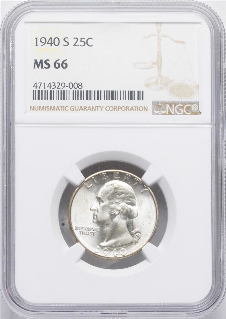 One 1940-S Washington Quarter Coin NGC MS66. NGC Certified.