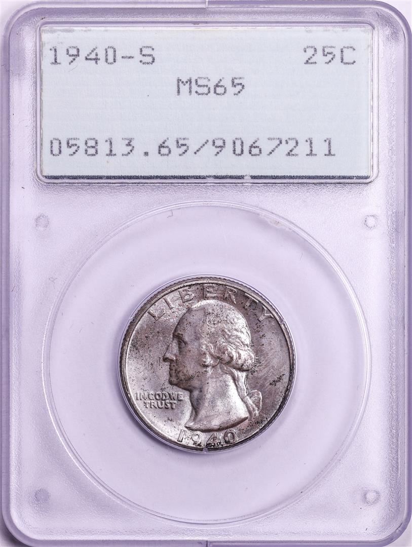 1940-S Washington Quarter Coin PCGS MS65 Old Green Rattler