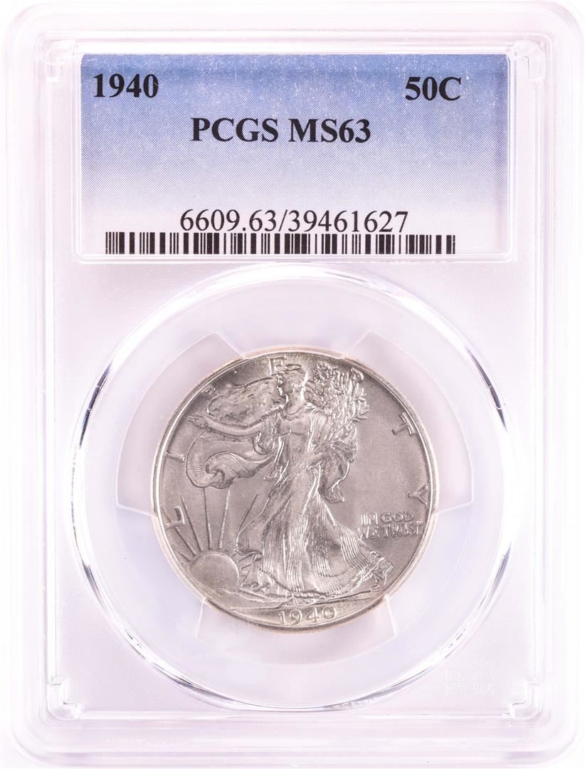 One 1940 Walking Liberty Half Dollar Coin PCGS MS63. PCGS Graded.