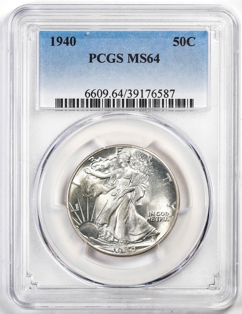 One 1940 Walking Liberty Half Dollar Coin PCGS MS64. PCGS Graded.