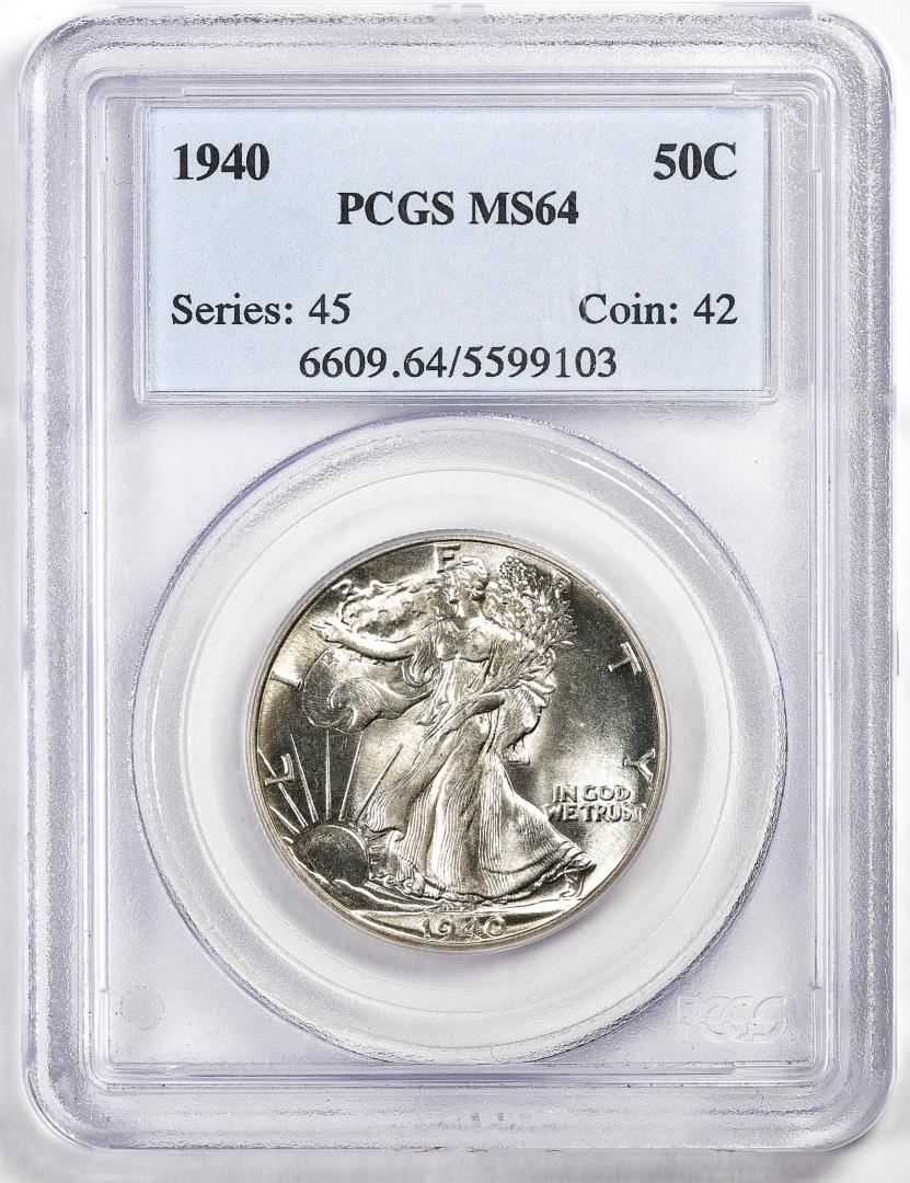 One 1940 Walking Liberty Half Dollar Coin PCGS MS64. PCGS Graded.