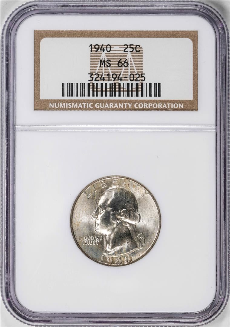 One 1940 Washington Quarter Coin NGC MS66. NGC Certified.