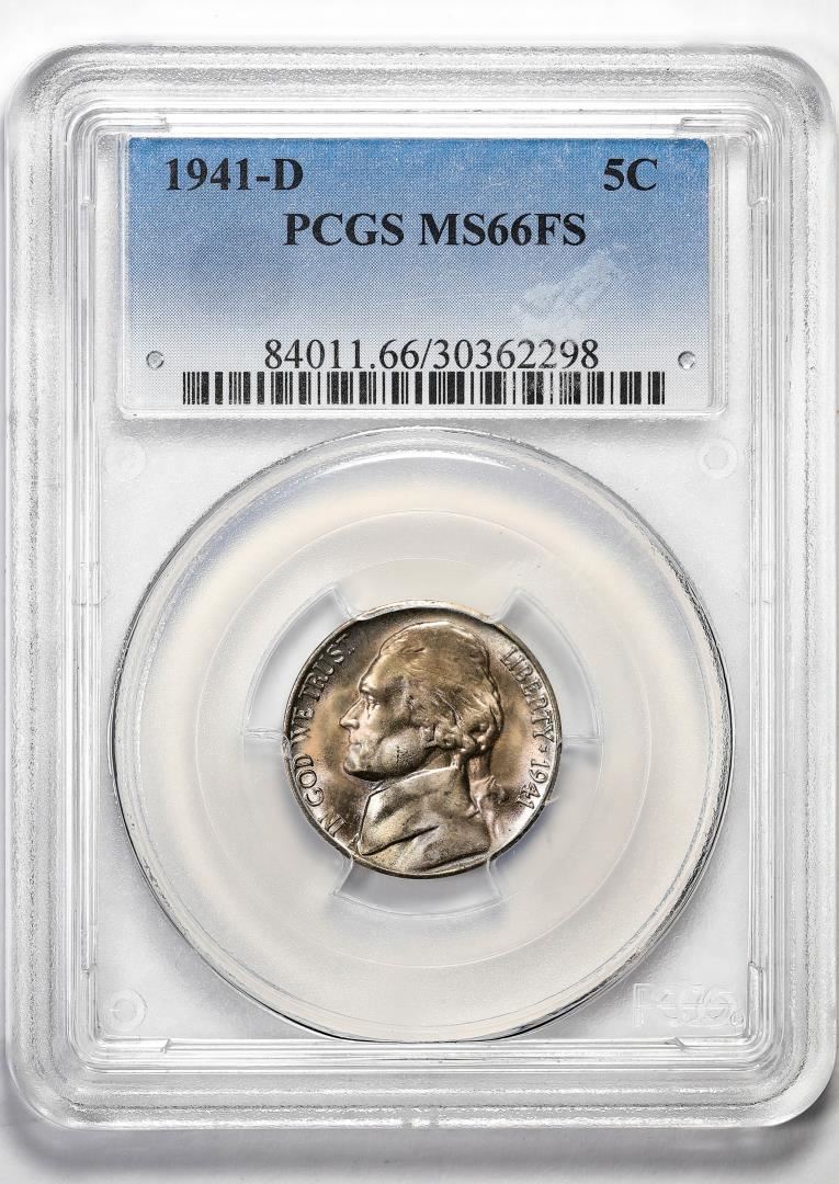 One 1941-D Jefferson Nickel Cent Coin PCGS MS66FS. PCGS Graded.