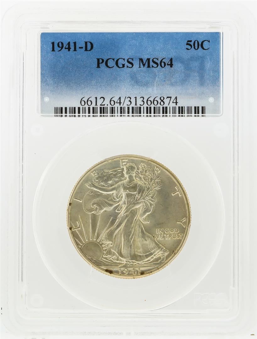 One 1941-D Walking Liberty Half Dollar Coin PCGS MS64. PCGS Graded.