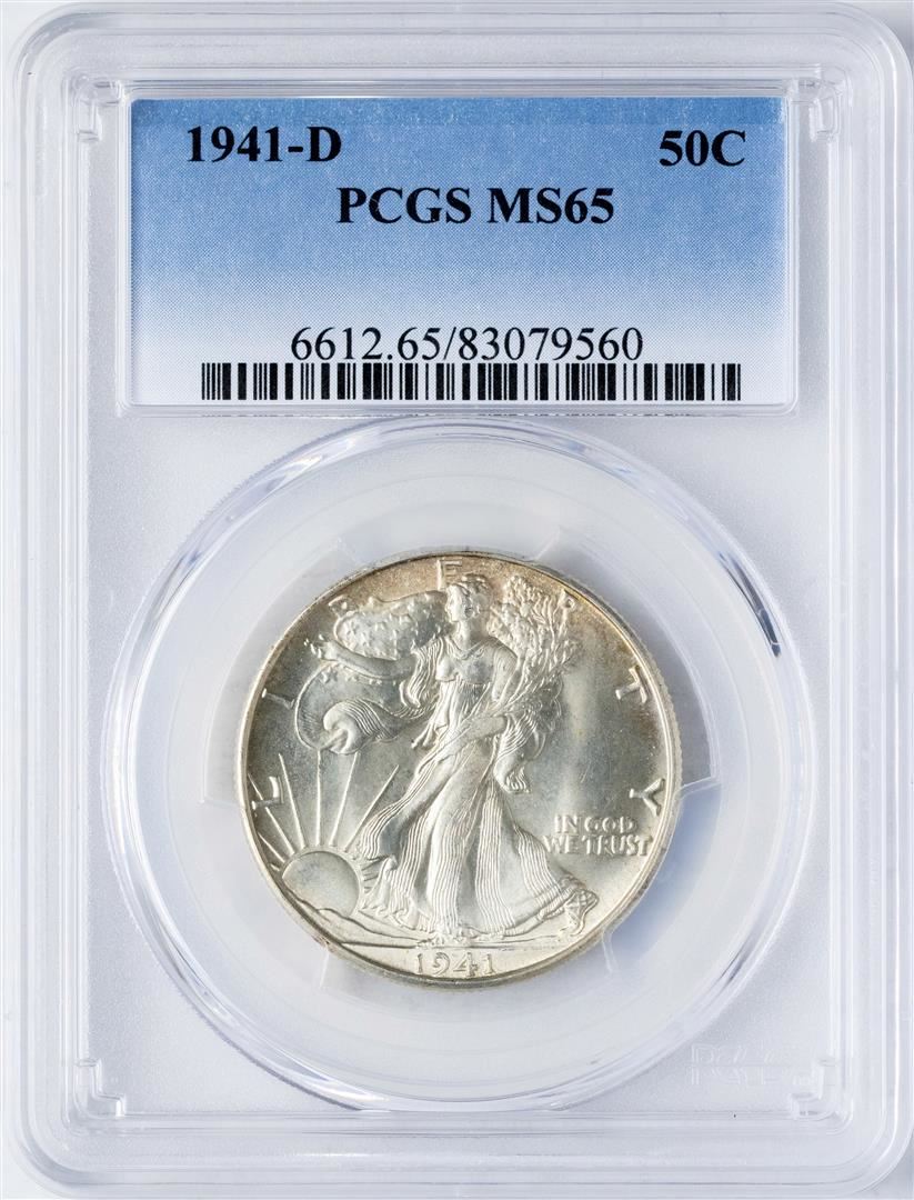 One 1941-D Walking Liberty Half Dollar Coin PCGS MS65. PCGS Graded.