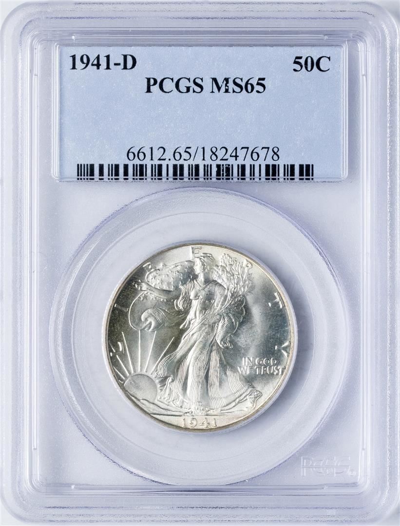 One 1941-D Walking Liberty Half Dollar Coin PCGS MS65. PCGS Graded.