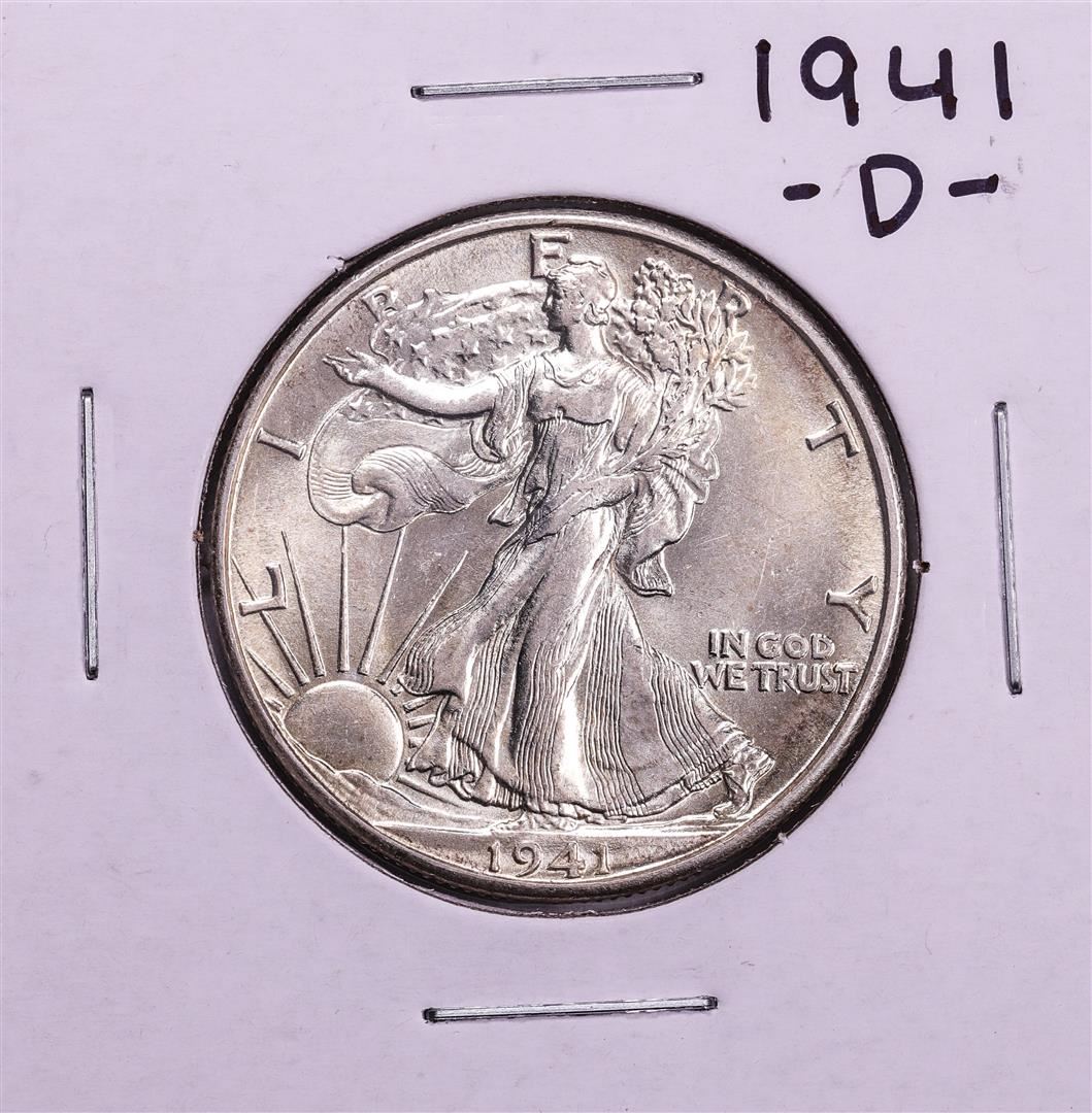 One 1941-D Walking Liberty Half Dollar Coin.
