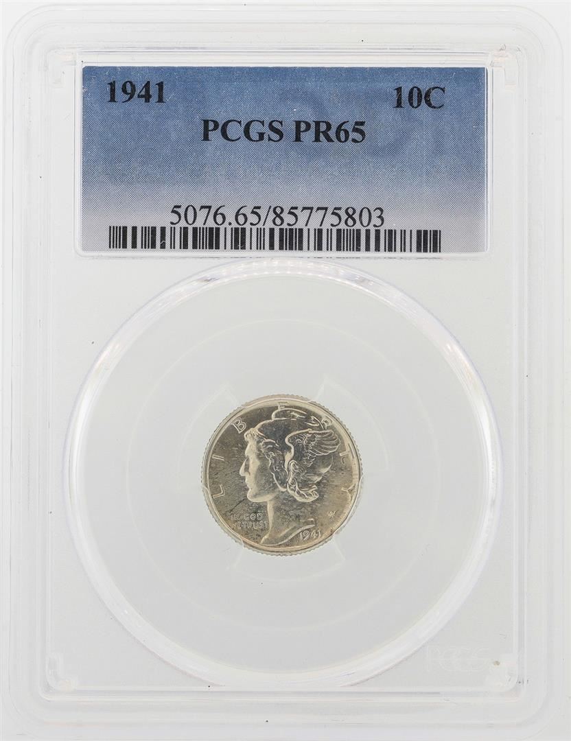 One 1941 Mercury Dime Proof Coin PCGS PR65. PCGS Graded.