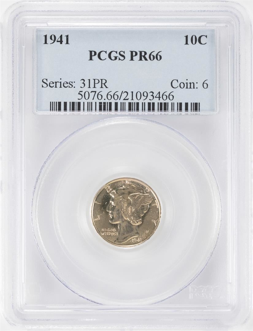 One 1941 Proof Mercury Dime Coin PCGS PR66. PCGS Graded.