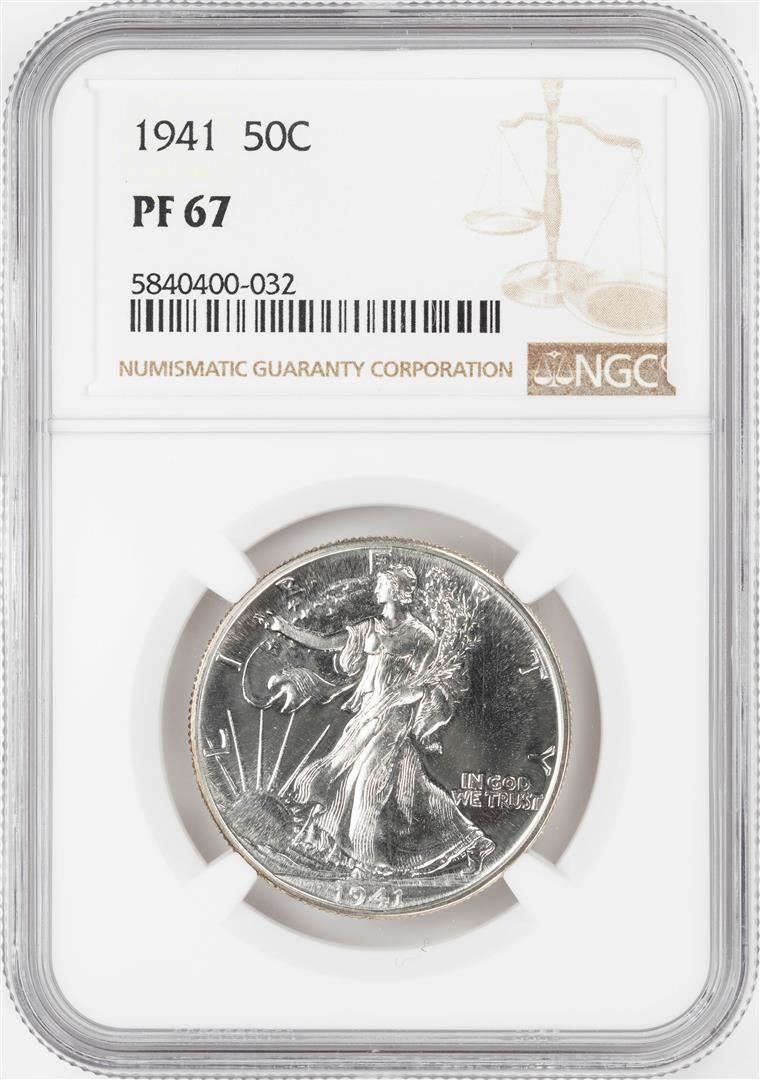 One 1941 Proof Walking Liberty Half Dollar Coin NGC PF67. NGC Certified.