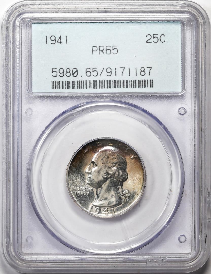 1941 Proof Washington Quarter Coin PCGS PR65 Old Green Holder