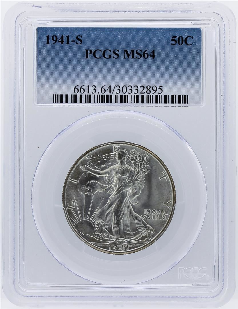 One 1941-S Liberty Walking Half Dollar PCGS Graded MS64. PCGS Graded.