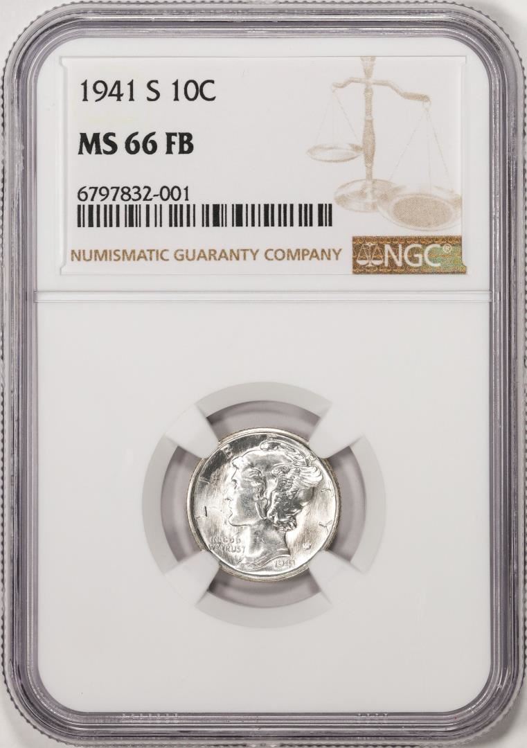 One 1941-S Mercury Dime Coin NGC MS66FB. NGC Certified.