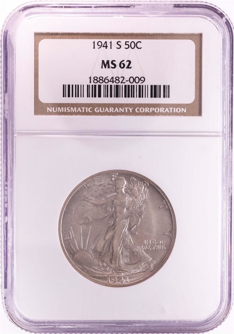 One 1941-S Walking Liberty Half Dollar Coin NGC MS62. NGC Certified.