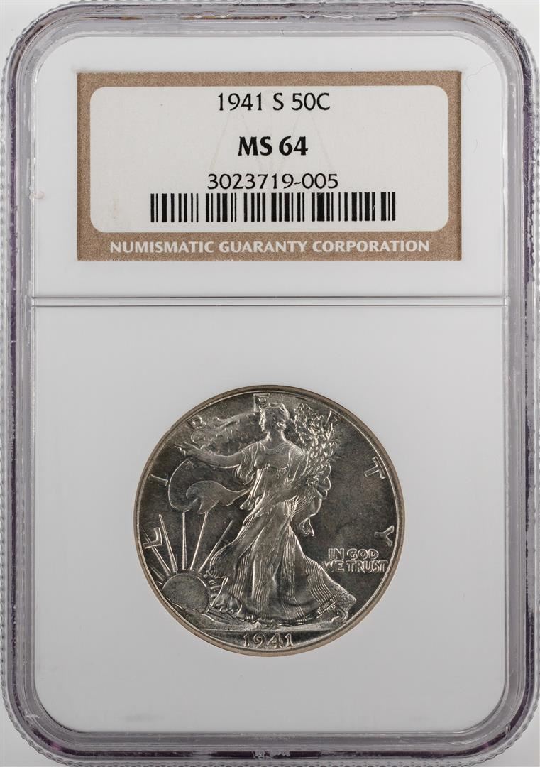 One 1941-S Walking Liberty Half Dollar Coin NGC MS64. NGC Certified.