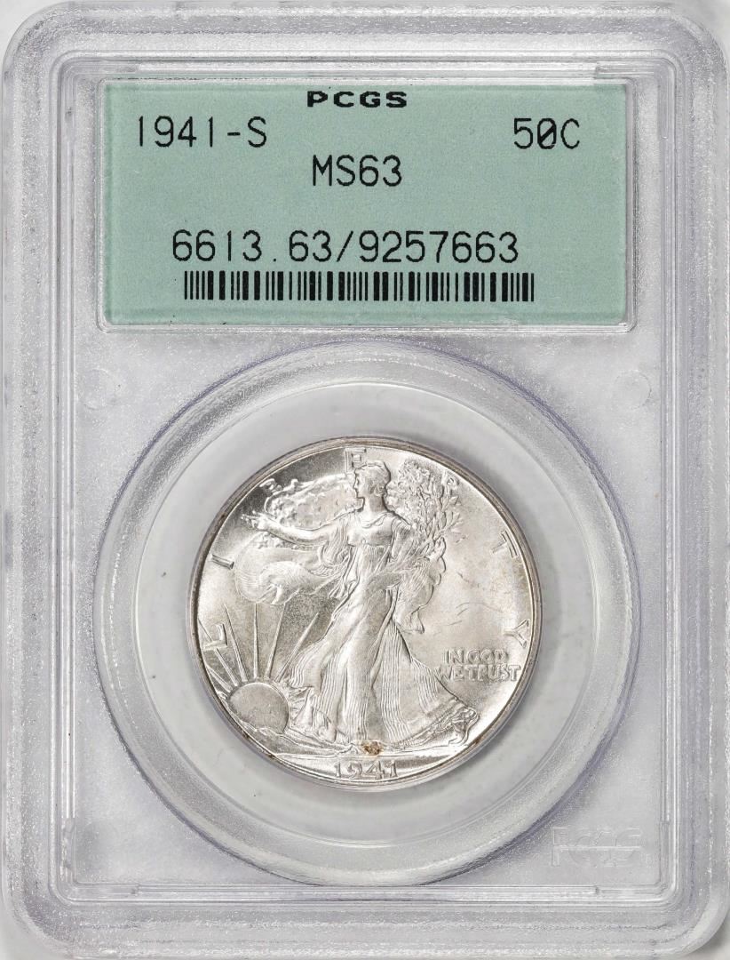 1941-S Walking Liberty Half Dollar Coin PCGS MS63 Old Green Holder