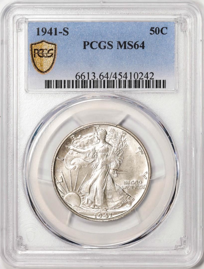 One 1941-S Walking Liberty Half Dollar Coin PCGS MS64. PCGS Graded.