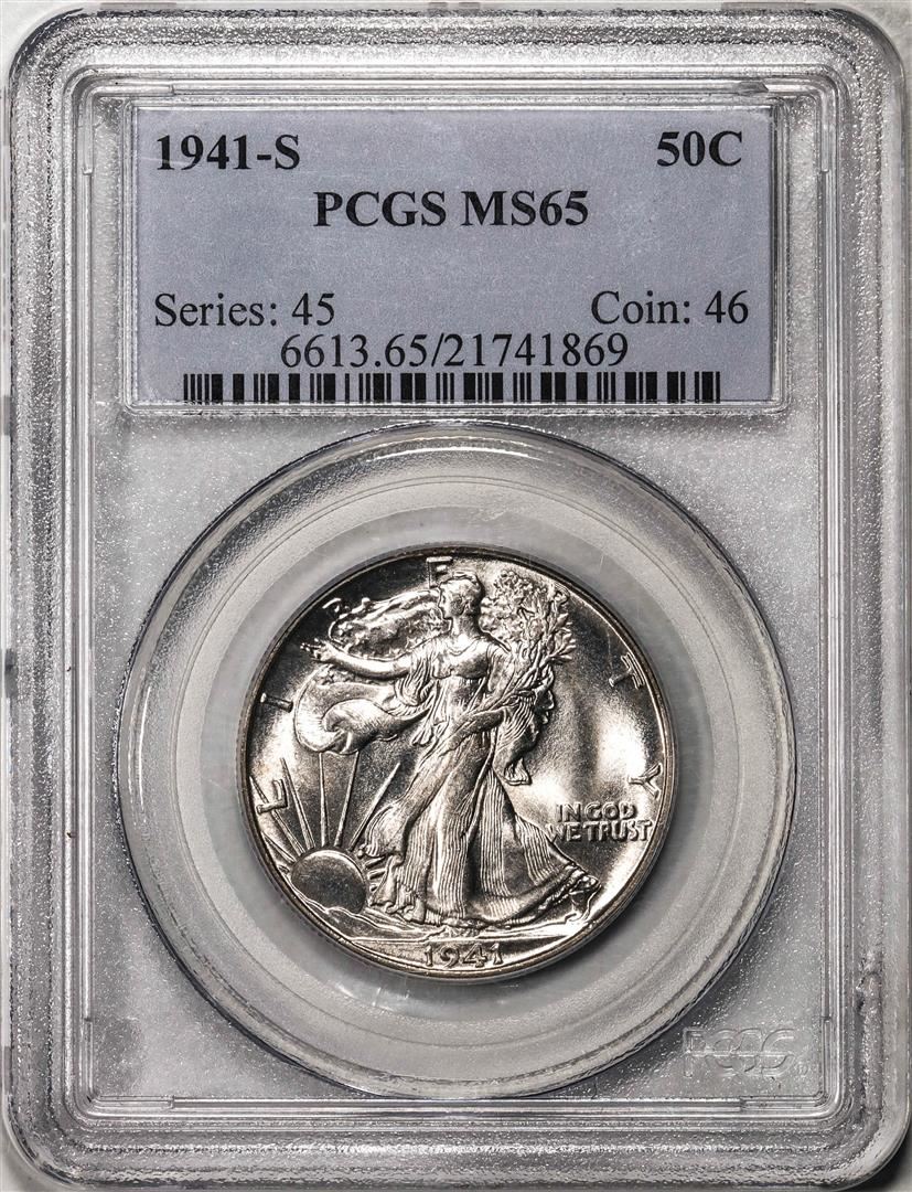 One 1941-S Walking Liberty Half Dollar Coin PCGS MS65. PCGS Graded.