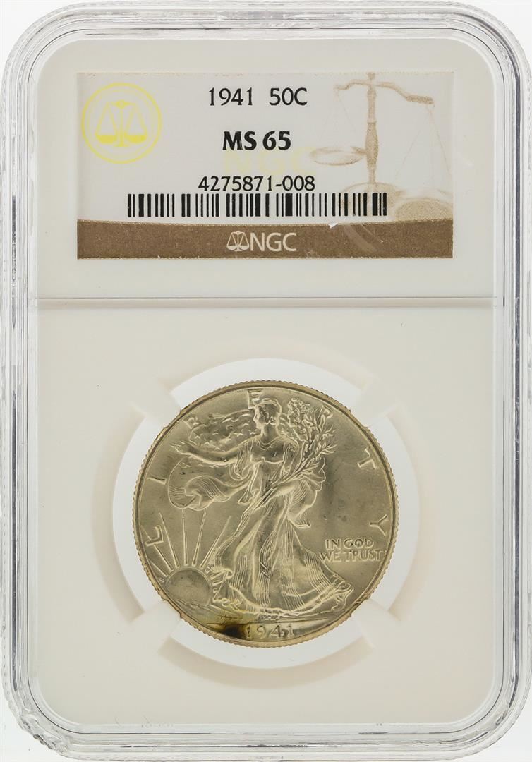 One 1941 Walking Liberty Half Dollar Coin NGC MS65. NGC Certified.