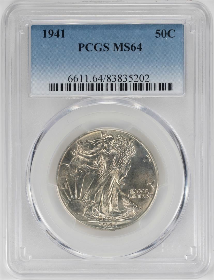 One 1941 Walking Liberty Half Dollar Coin PCGS MS64. PCGS Graded.