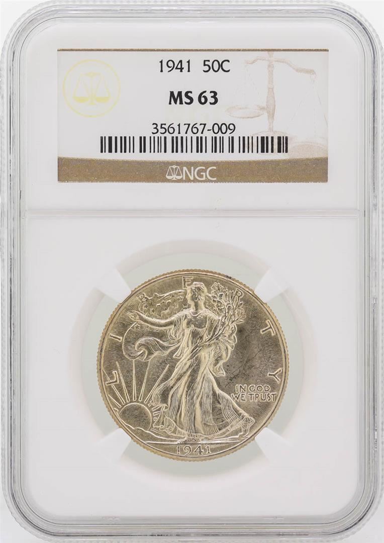 One 1941 Walking Liberty Half Dollar Silver Coin NGC MS63. NGC Certified.