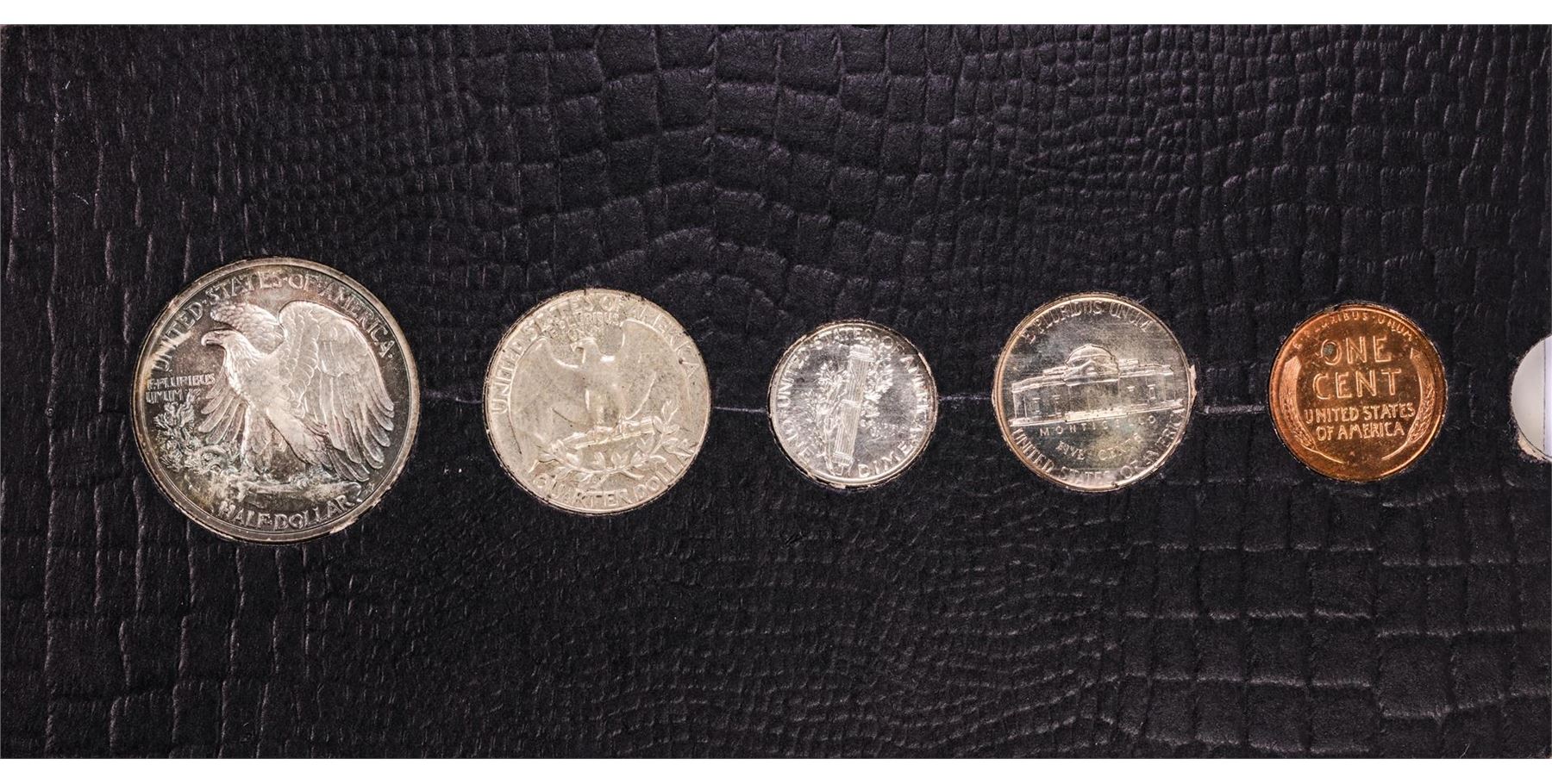 One 1942 (5) Coin Proof Set In Old Slide Holder.