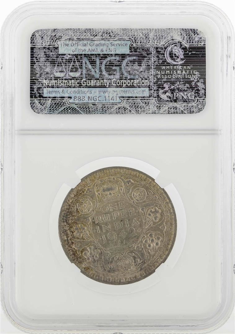 One 1942(B) India Rupee NGC AU58. NGC Certified.