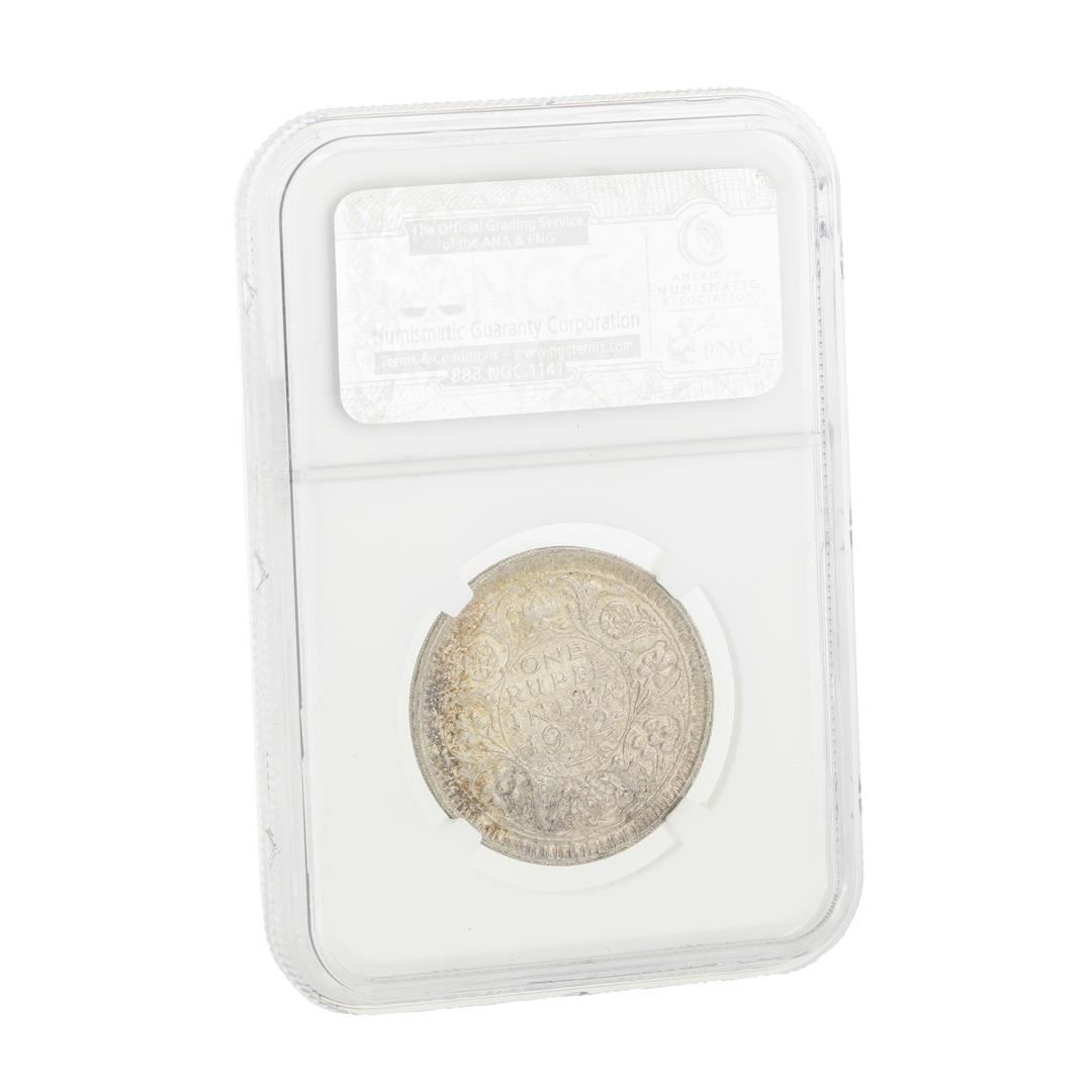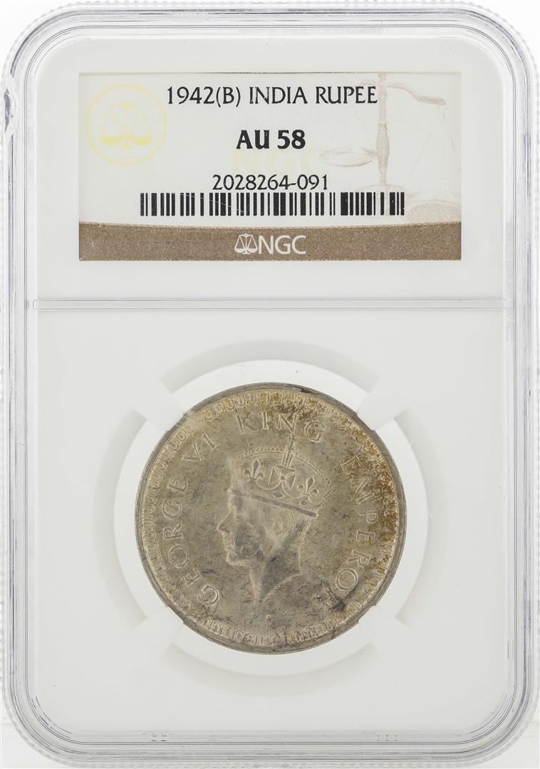 One 1942(B) India Rupee NGC AU58. NGC Certified.