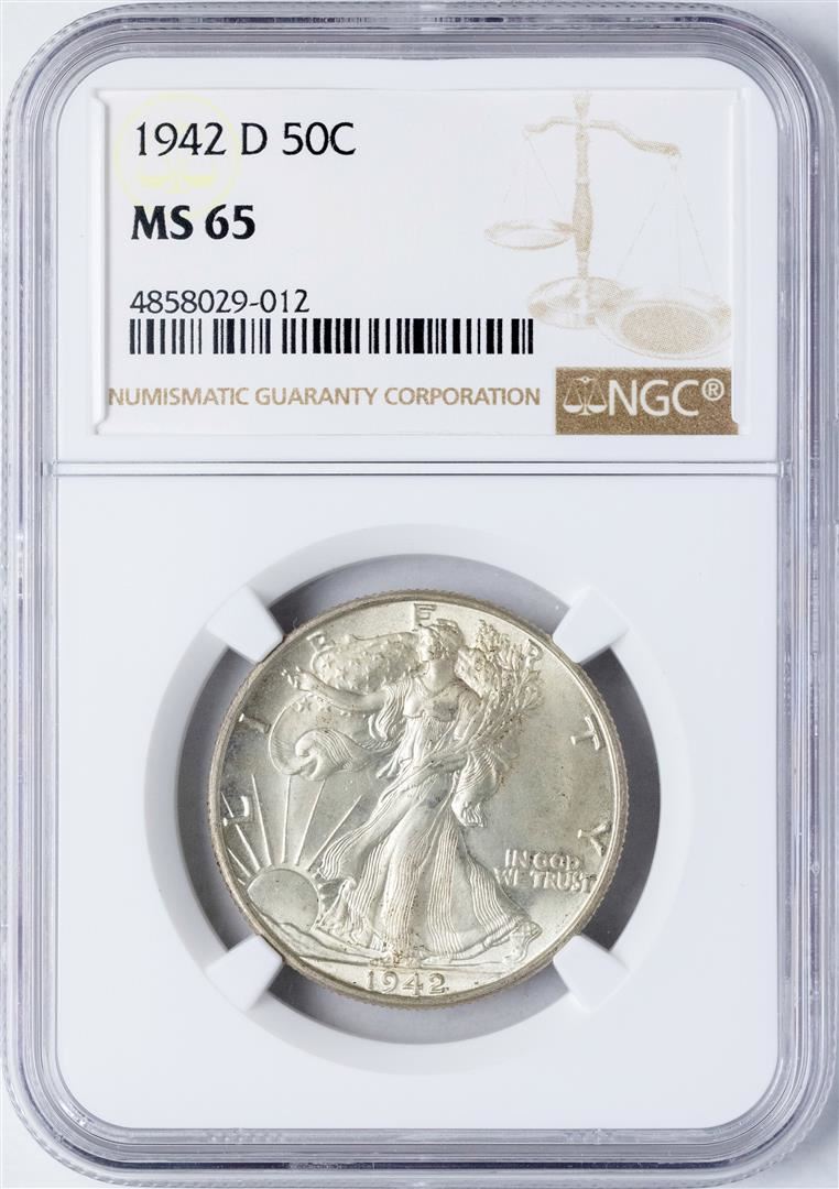 1942-D Walking Liberty Half Dollar Coin NGC MS65