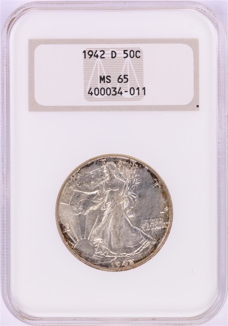 One 1942-D Walking Liberty Half Dollar Coin NGC MS65.