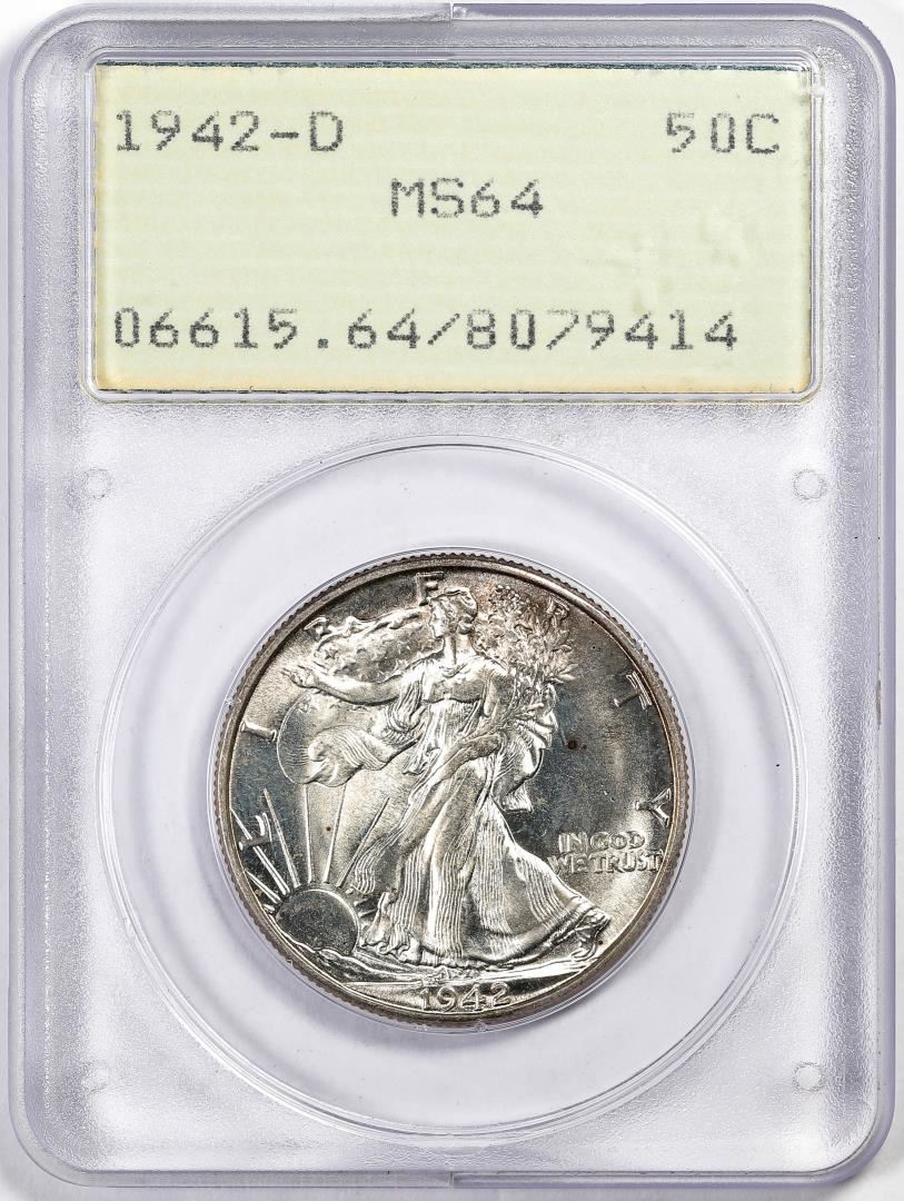 1942-D Walking Liberty Half Dollar Coin PCGS MS64 Old Green Rattler