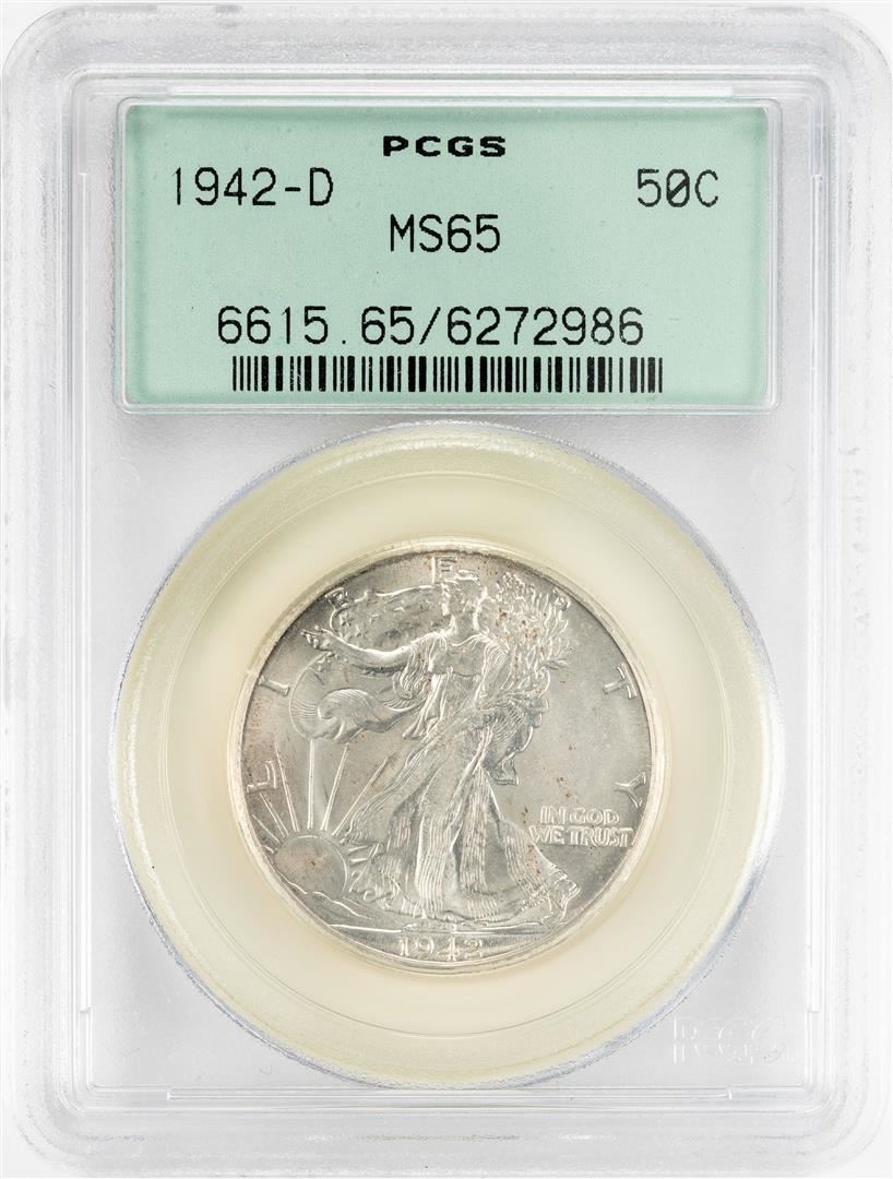 1942-D Walking Liberty Half Dollar Coin PCGS MS65 Old Green Holder