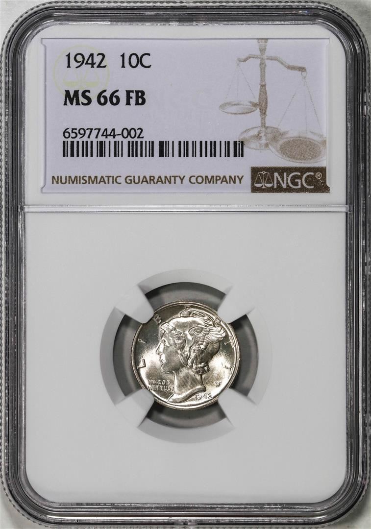 One 1942 Mercury Dime Coin NGC MS66FB. NGC Certified.