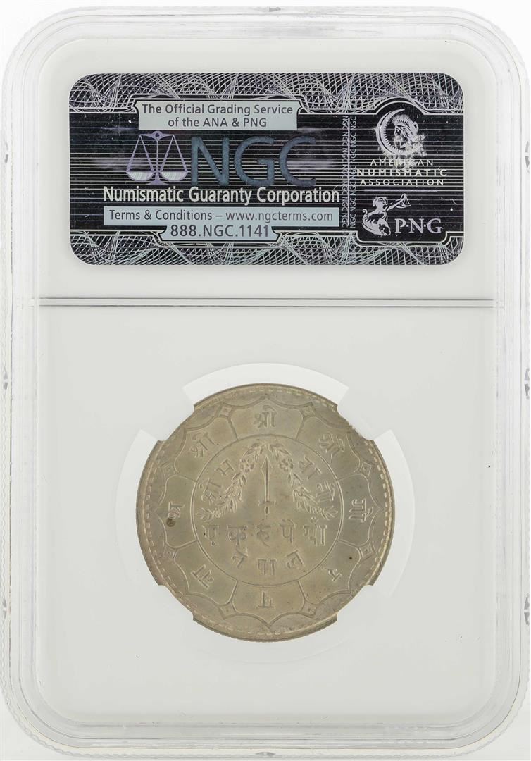 One 1942 Nepal Silver Rupee Coin NGC MS64. NGC Certified.