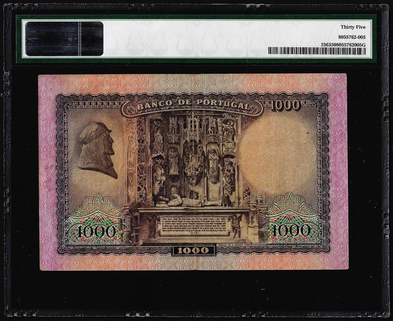 One 1942 Portugal Banco de Portugal 1000 Escudos Note Pick# 156 PMG Choice Very Fine 35. PMG Certified.