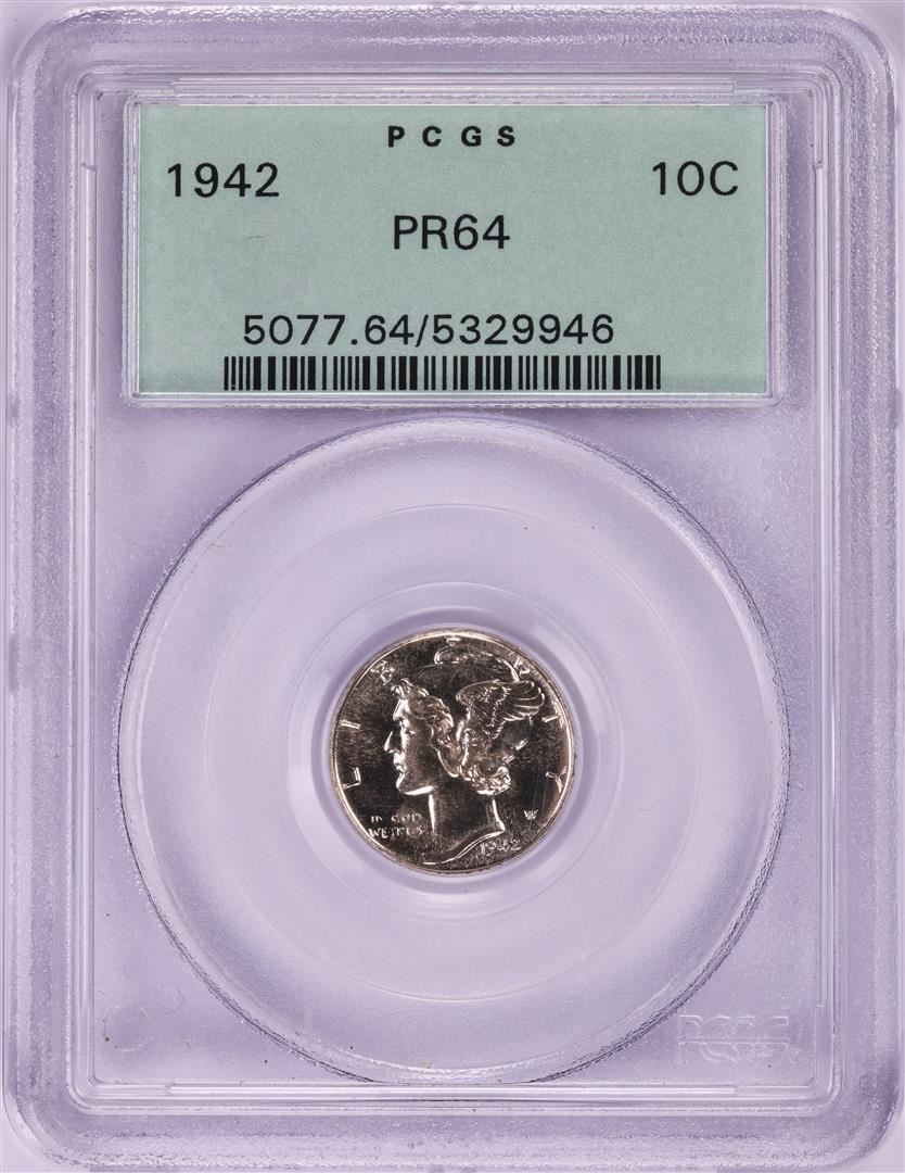 One 1942 Proof Mercury Dime Coin PCGS PR64 Old Green Holder. PCGS Graded.
